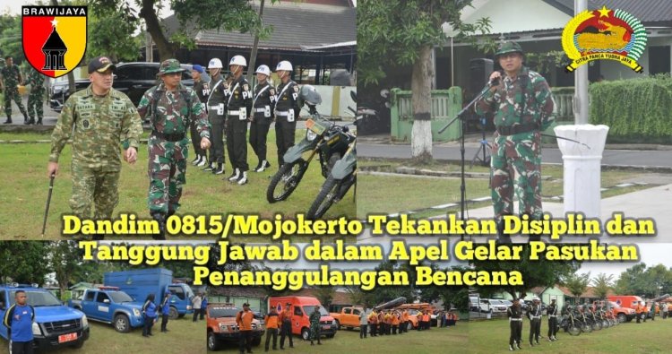 Mojokerto - Dandim 0815/Mojokerto Letkol Inf Abi Swanjoyo, S.Hub.Int., menegaskan pentingnya disiplin, kesiapsiagaan, serta rasa tanggung jawab seluruh personel dalam menghadapi potensi bencana alam di wilayah Kabupaten dan Kota Mojokerto.