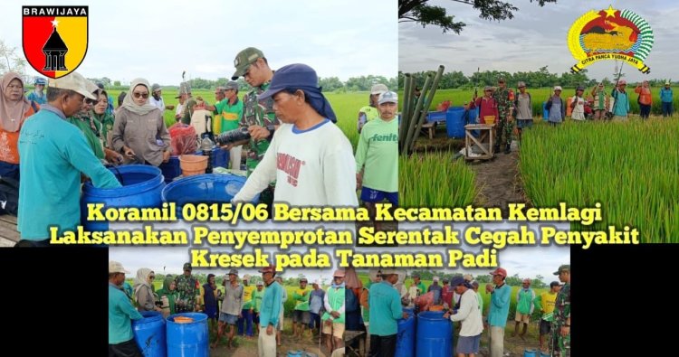 Danramil 0815/06 Kemlagi Kapten Inf Sudirman, S.H., saat dikonfirmasi mengatakan, kegiatan penyemprotan serentak ini merupakan bentuk sinergi TNI bersama instansi terkait dan para petani dalam upaya pencegahan serta pengendalian penyakit kresek pada tanaman padi.