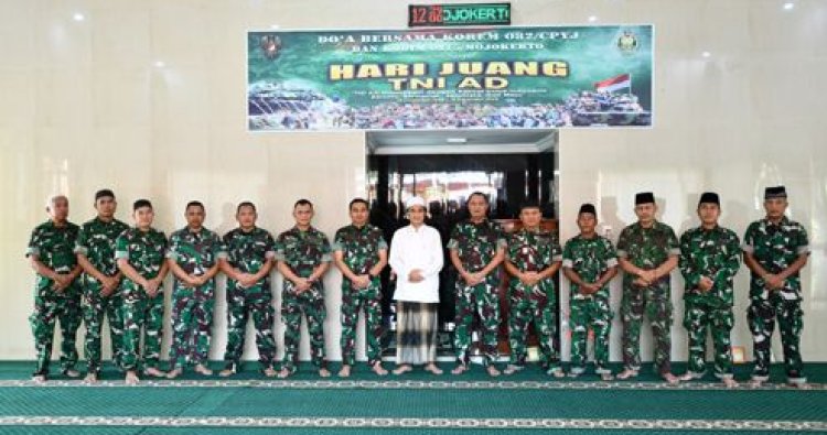 Mojokerto, – Dalam rangka memperingati Hari Juang TNI AD Tahun 2025, Komando Resor Militer (Korem) 082/CPYJ dan Komando Distrik Militer (Kodim) 0815/Mojokerto menggelar acara Doa Bersama dengan khidmat di Masjid Raudlotul Iman Korem 082/CPYJ, Mojokerto Kamis (12/12/2025).