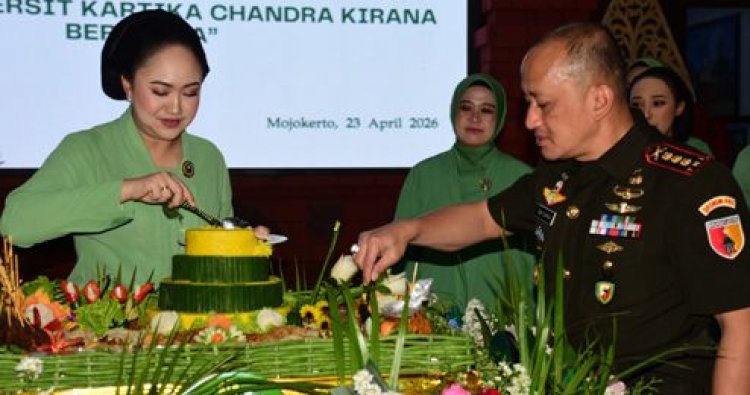 Mojokerto, – Danrem 082/CPYJ Kolonel Inf Batara S.Hub.Int., M.Hub.Int., memimpin langsung acara syukuran dalam rangka memperingati Hari Ulang Tahun (HUT) ke-80 Persatuan Istri Tentara (Persit) Kartika Chandra Kirana (KCK) tahun 2026, yang berlangsung khidmat ini digelar di Makorem 082/CPYJ pada hari ini Kamis (23/04/2026).