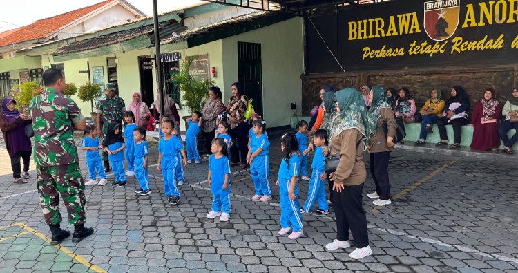 Mojokerto - Sebanyak 20 anak didik dari Satuan Pendidikan Anak Usia Dini Sejenis (SPS) Nangka melaksanakan kunjungan edukatif ke Markas Kodim 0815/Mojokerto, Jalan Majapahit Nomor 01, Kota Mojokerto, Jawa Timur, Jumat (05/12/2025). Kedatangan para siswa disambut hangat Pasipers Kodim 0815/Mojokerto, Kapten Inf Rudi Hartono, beserta anggota.